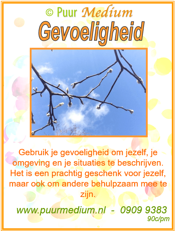 Leuk dat je mee hebt gedaan met de kaartkeuze op de Facebookpagina van Puur Medium! Hieronder vind je de uitleg van Puur Medium Orakelkaart 3 :Gevoeligheid
