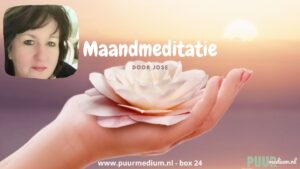 Van harte welkom bij de maandelijkse meditaties. Naar aanleiding van wat José mag invoelen voor de maand maakt ze een geleide meditatie. Jose van Puur Medium (box 24) verzorgt maandelijks een op de maand afgestemde mediatie voor jou. Je kunt uiteraard ook gewoon een meditatie op je gevoel uitkiezen.