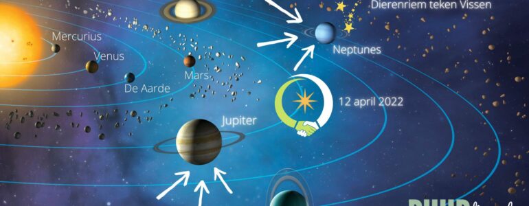 Maar enfin, terug naar ons huidige onderwerp: op 12 april 2022 is er een samenstand van de planeet Jupiter met Neptunus in het dierenriemteken Vissen. Jupiter als de oude heerser van het teken Vissen en Neptunus als de moderne, maakt deze samenkomst nog sterker. Samenstanden zijn altijd krachtig, onderdeel van een cyclus en vormen een geheel met andere planetaire gebeurtenissen. De laatste keer dat deze twee planeten elkaar in het Vissenteken ontmoetten was op 17 maart 1856. Opmerkelijke gebeurtenissen toen: een pandemie van gele koorts en cholera, en een oorlog in de Krim.