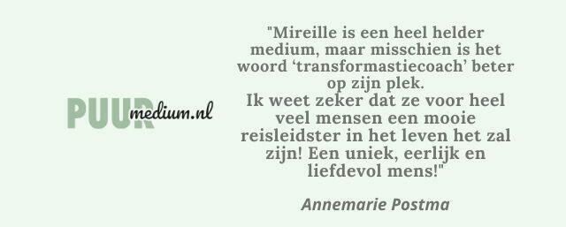 Annemarie Postma Mireille is een heel helder medium, maar misschien is het woord ‘transformastiecoach’ beter op zijn plek....