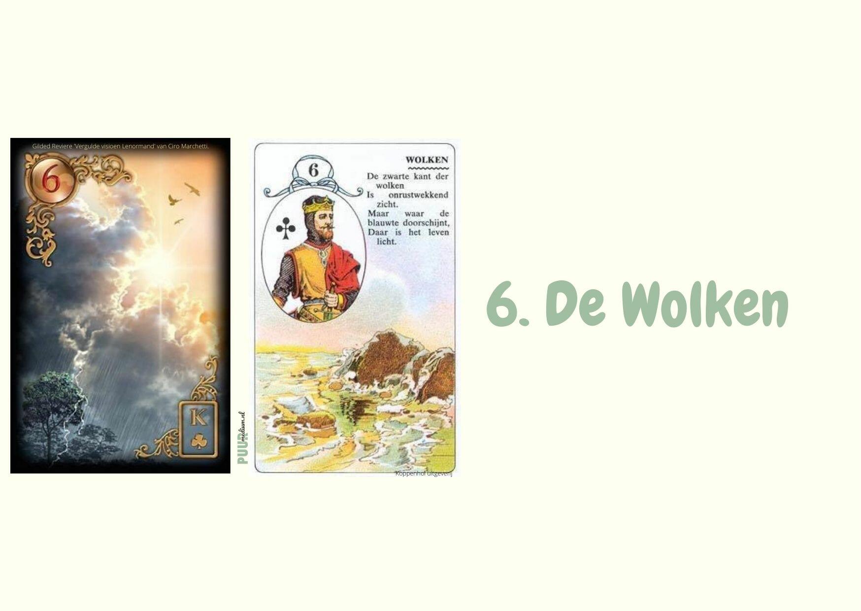 Deze lijst met combinaties voor de waarzeg Lenormandkaart ‘De Wolken’ is samengesteld en bedoeld als hulpmiddel om je te helpen bij het leren van de waarzeg Lenormand kaarttrekkingen of kaartleggingen beter te leren duiden en begrijpen. Dit is alleen een lijstje met verschillende betekenissen in combinaties met de waarzeg Lenormandkaart ‘De Wolken’.