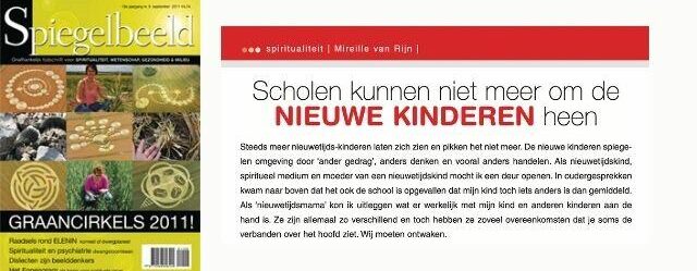 Steeds meer nieuwetijds-kinderen laten zich zien en pikken het niet meer. De nieuwe kinderen spiegelen omgeving door ‘ander gedrag’, anders denken en vooral anders handelen. Als nieuwetijdskind, spiritueel medium en moeder van een nieuwetijdskind mocht ik een deur openen. In oudergesprekken kwam naar boven dat het ook de school is opgevallen dat mijn kind toch iets anders is dan gemiddeld. Als ‘nieuwetijdsmama’ kon ik uitleggen wat er werkelijk met mijn kind en anderen kinderen aan de hand is. Ze zijn allemaal zo verschillend en toch hebben ze zoveel overeenkomsten dat je soms de verbanden over het hoofd ziet. Wij moeten ontwaken. Klik hier voor het artikel van Mireille in het blad Spiegelbeeld